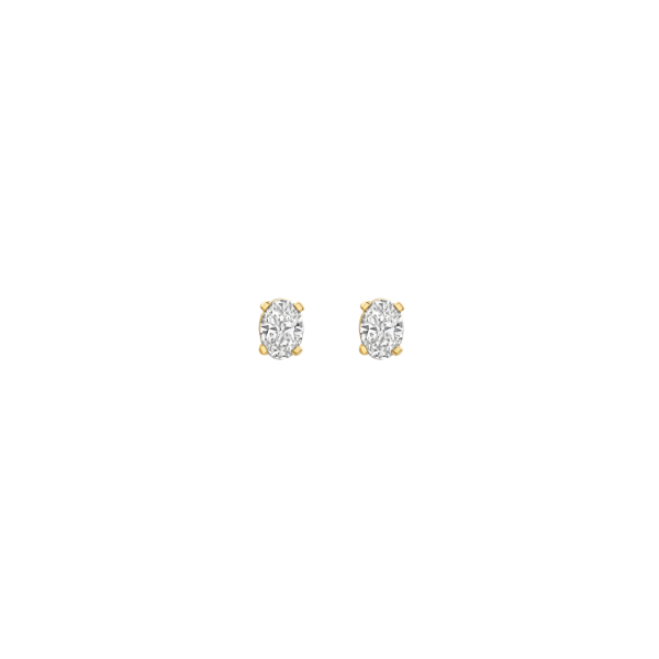 Deze stijlvolle oorknoppen van Blush zijn gemaakt van 14 karaats geelgoud en zijn afgewerkt met lab grown diamonds.