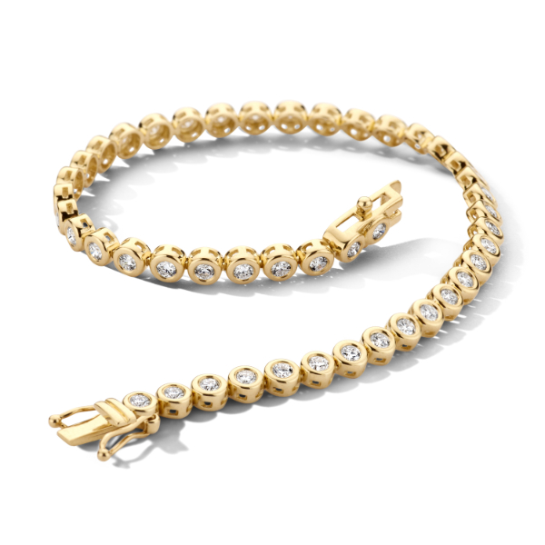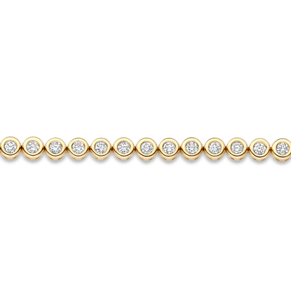 Deze stijlvolle Blush 14K geelgouden armband is afgewerkt met lab-diamonds. De diamantjes hebben een totaal karaatgewicht van 1,51 en de armband heeft een lengte van 17 cm.