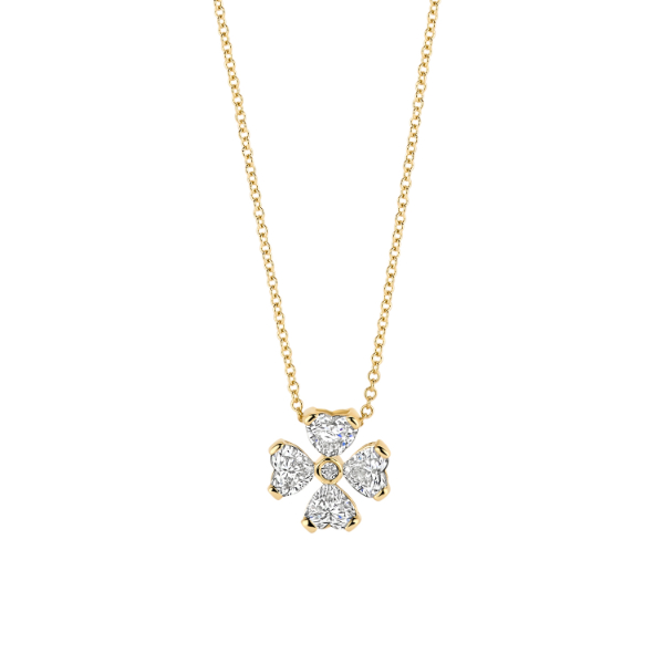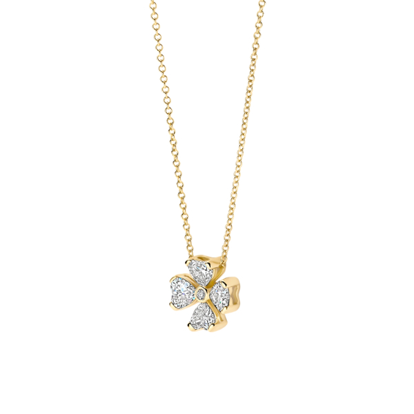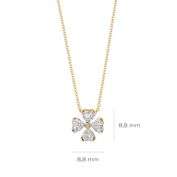 Dit mooie 14 karaats gouden collier is afgewerkt met een prachtinge hanger. Deze Blush hanger is eveneens gemaakt van 14 karaats geelgoud en is afgewerkt met lab grown diamonds. De hanger is ontworpen in de vorm van een klavertje vier.