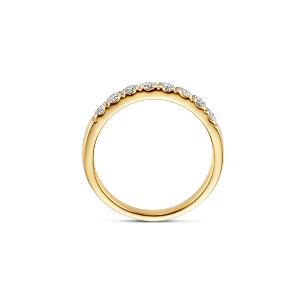 Deze mooie ring van Blush is gemaakt van 14 karaats geelgoud en is afgewerkt met lab grown diamonds. De ring heeft een diameter van 3 mm.