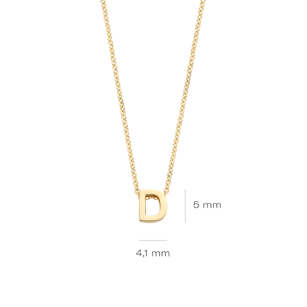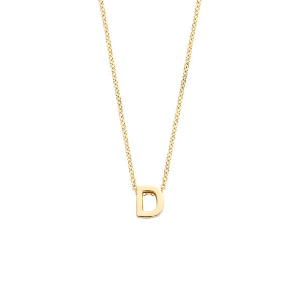 Deze mooie ketting komt uit de Blush Collectie. Het collier is gemaakt van 14 karaats goud en heeft een hanger met de letter D.