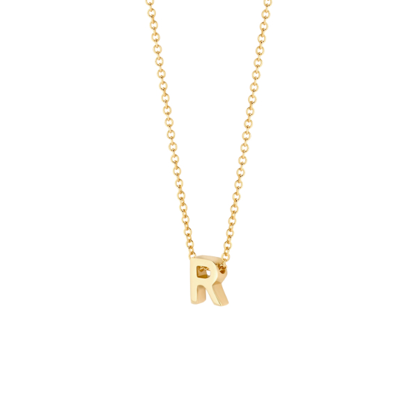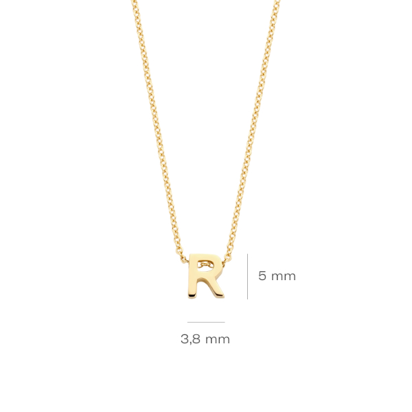 Deze mooie ketting komt uit de Blush Collectie. Het collier is gemaakt van 14 karaats goud en heeft een hanger met de letter R.