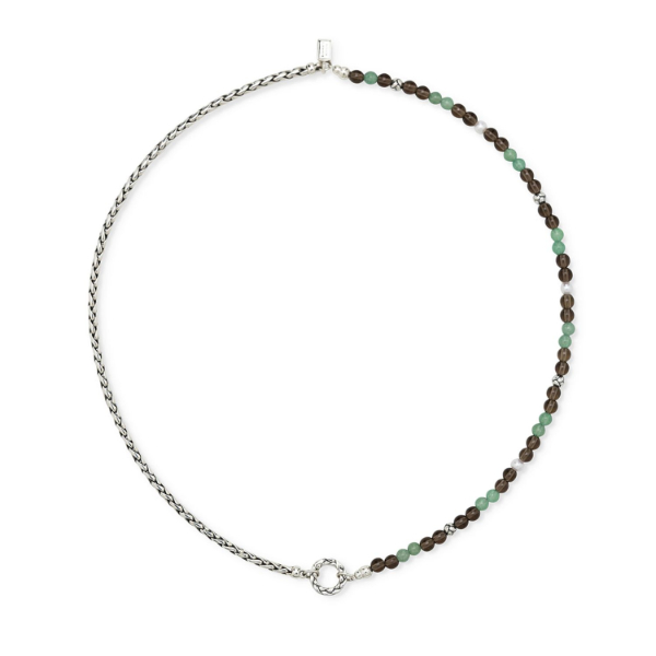Deze stijlvolle ketting van Buddha To Buddha ketting is gemaakt van 925 sterling zilver en is afgewerkt met aventurijn en rookkwarts.