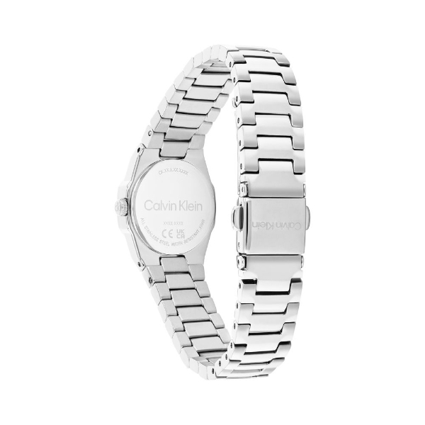 Dit stijlvolle Calvin Klein horloge heeft een edelstalen horlogeband in combinatie met een 23 mm edelstalen kast. De zilverkleurige wijzerplaat is afgewerkt met zilverkleurige indexen. Het horloge is waterdicht tot 3 atm, wat het spatwaterdicht maakt.