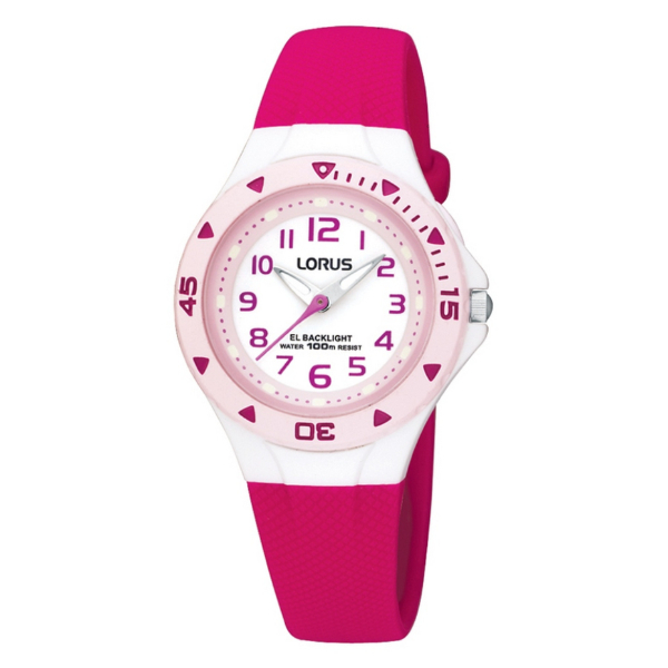 Deze stoere dameshorloge van Lorus heeft een stijlvolle roze band. Het horloge is analoog, wat zorgt voor een strak design.