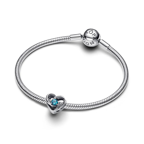 Deze mooie bedel van Pandora is gemaakt van 925 sterling zilver en is afgewerkt met een blauwe steen in een hart.