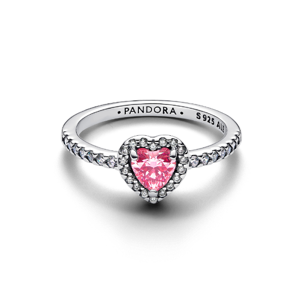 Deze stijlvolle Pandora ring is gemaakt van 925 sterling zilver en is afgewerkt met zirkonia en een hart vorm in combinatie met een roze steen.