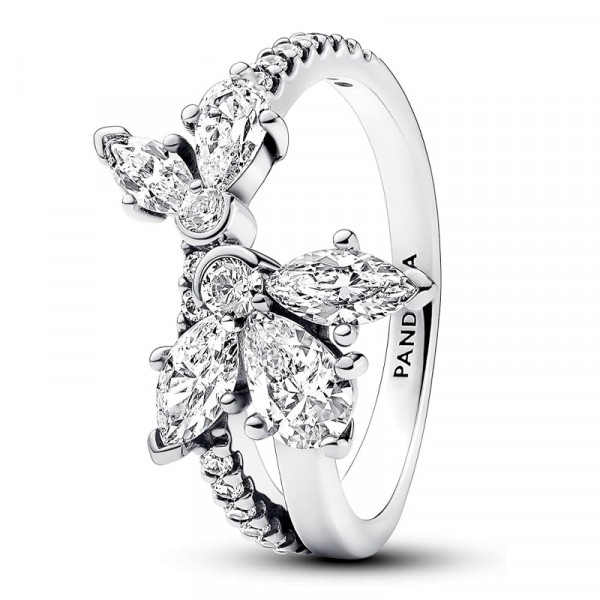 Deze mooie Pandora ring is afgewerkt met assymetrische zirkoniastenen en is gemaakt van 925 sterling zilver.