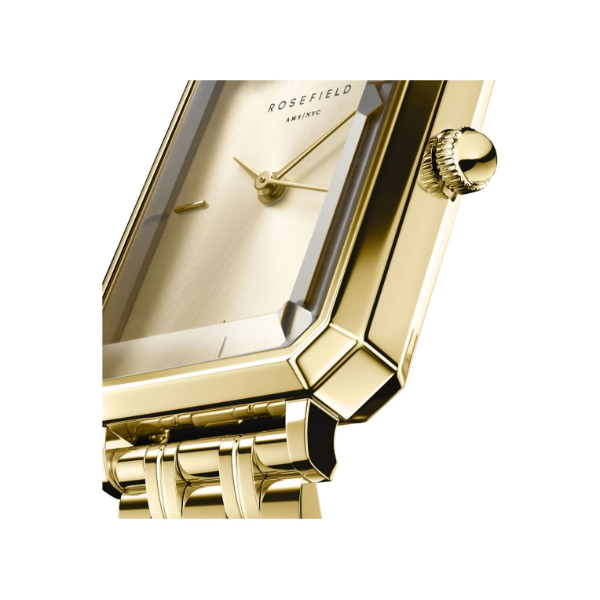Deze mooie horloge van Rosefield is gemaakt van edelstaal, in een gouden kleur. Onder de wijzerplaat bevind zich een quartz uurwerk. Verder is het horloge 3 ATM waterdicht.
