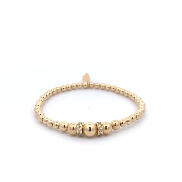 Deze armband van PScallme is gemaakt van zilver en een laagje goud. Het is een armband met goudkleurige balletjes en 2 wieltjes met strass die niet verkleurt.