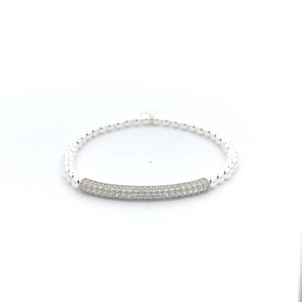 Deze armband van PScallme is gemaakt van zilver. Het is een armband met zilveren balletjes en een strass balk.