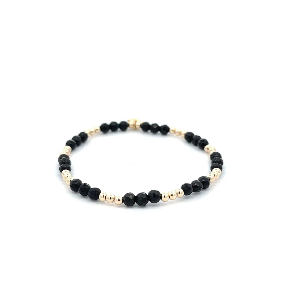 Deze PScallme armband is gemaakt van zilver.De armband heeft goudkleurige balletjes en zwart gekleurde stenen die niet verkleuren.