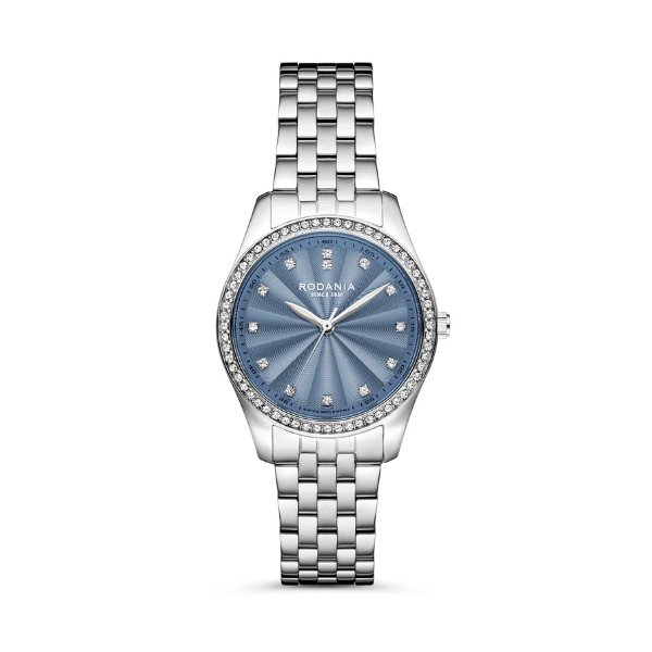 Dit stijlvolle horloge van Rodania komt uit de Gstaad Ladies serie, een perfecte collectie die innovatie en elegantie combineert. Het horloge beschikt over een zilverkleurige edelstalen band en kast in combinatie met een blauwe wijzerplaat. Het horloge wordt aangedreven door een quartz batterij uurwerk en is waterdicht tot 5 atm, wat het horloge geschikt maakt voor dagelijks gebruik.