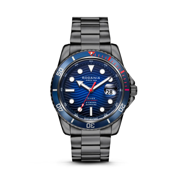 Dit Léman horloge is vernoemd naar de gelijknamige regio in Zwitserland. Het model beschikt over een zwarte horlogekast en horlogeband. De blauwe wijzerplaat is afgewerkt met goudkleurige wijzers en uurmarkeringen. Dit model is waterdicht tot 200 meter, wat het geschikt maakt om mee te duiken.