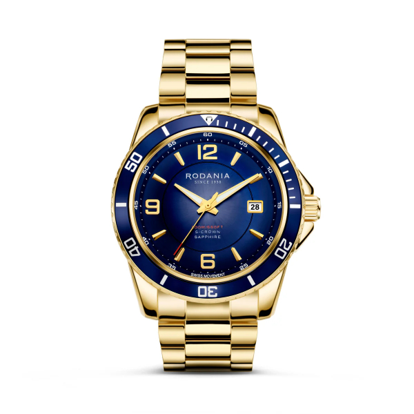 Dit Léman horloge is vernoemd naar de gelijknamige regio in Zwitserland. Het model beschikt over een goudkleurige horlogekast en horlogeband. De blauwe wijzerplaat is afgewerkt met goudkleurige wijzers en uurmarkeringen. Dit model is waterdicht tot 200 meter, wat het geschikt maakt om mee te duiken.
