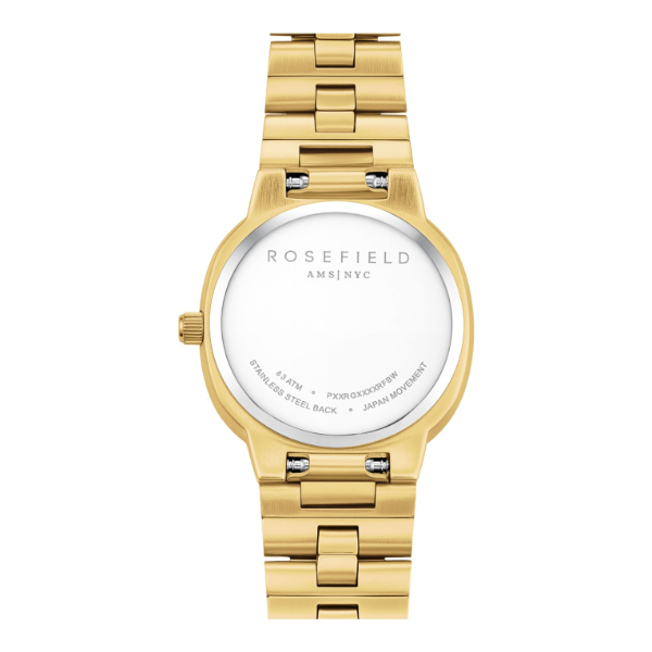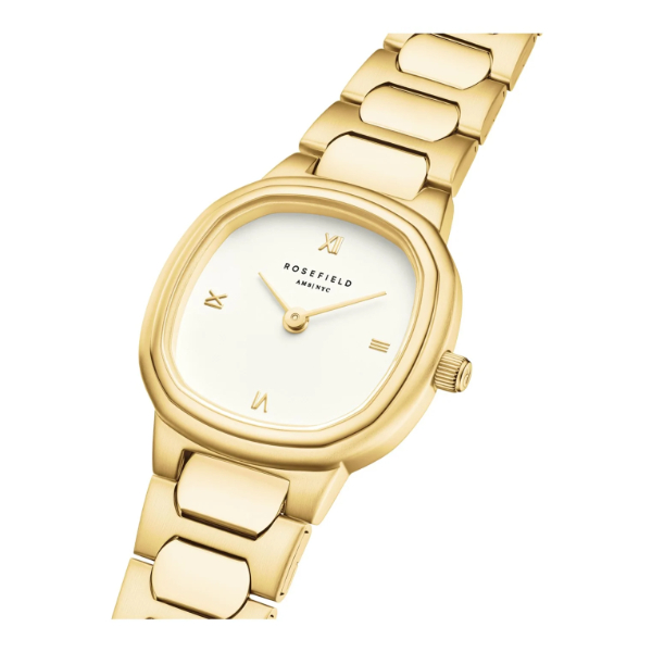 Dit stijlvolle Rosefield horloge beschikt over een goudkleurige horlogeband en horlogekast. De Créme kleurige wijzerplaat is afgewerkt met goudkleurige wijzers.