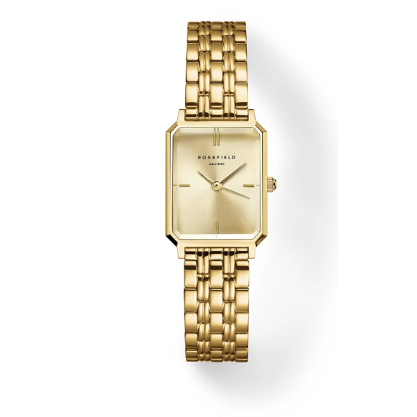 Dit stijlvolle Rosefield Octagon XS horloge dankt zijn naam aan de subtiele kastdiameter van 19,5 mm x 24 mm. Het model beschikt over een goudkleurige band, kast en wijzerplaat. Dit horloge is spatwaterdicht.