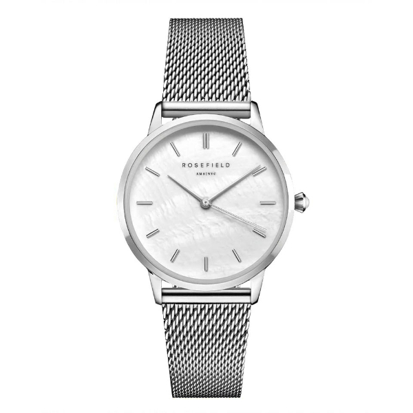 Deze horloge van Rosefield is gemaakt van edelstaal en heeft een zilveren kleur. De wijzerplaat van dit model heeft een mooi rëlief en past goed bij de zilverkleurige wijzers.