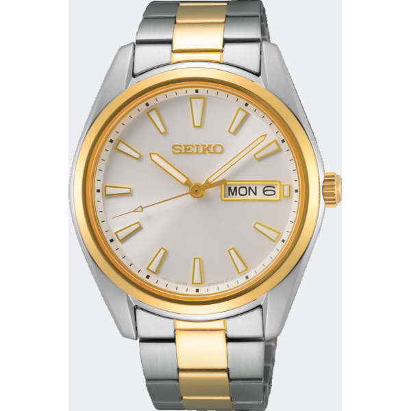 Deze stijlvolle Seiko beschikt over een bicolor gekleurde edelstalen horlogeband en kast. Het horloge wordt aangedreven door een quartz uurwerk en beschikt over een krasvrij saffierglas. Dit model is waterdicht tot 10 atm, wat het geschikt maakt om mee te zwemmen,