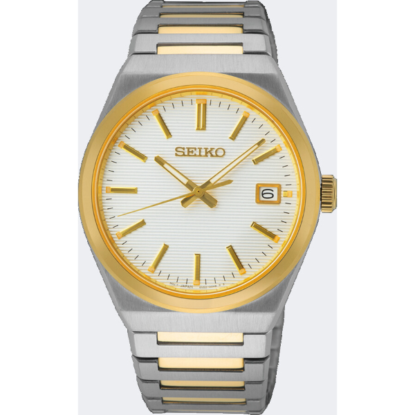 Deze stijlvolle Seiko beschikt over een bicolor gekleurde edelstalen horlogeband en kast. Het horloge wordt aangedreven door een quartz uurwerk en beschikt over een krasvrij saffierglas. Dit model is waterdicht tot 10 atm, wat het geschikt maakt om mee te zwemmen,