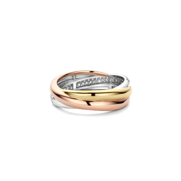 Deze stijlvolle Ti Sento ring is gemaakt van 925 sterling zilver en is afgewerkt met zirkonia, geelgoud en roségoud.