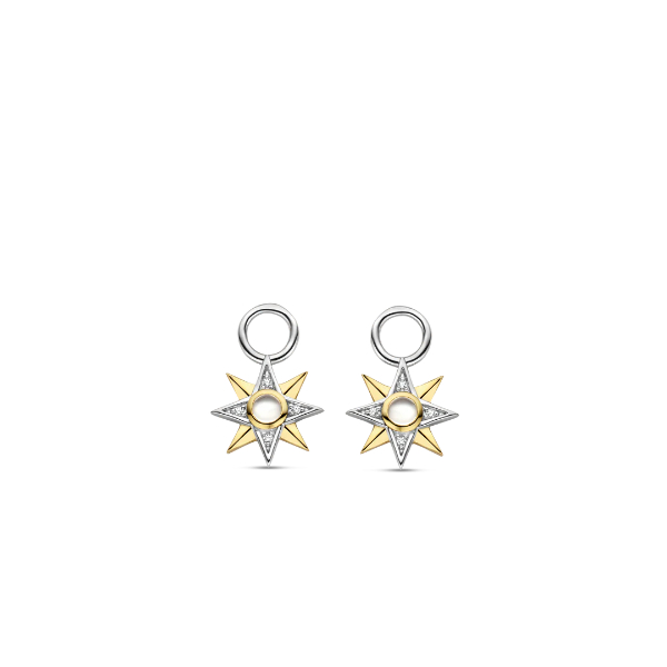 Deze mooie oorbedels van Ti Sento zijn gemaakt van 925 sterling zilver en zijn afgewerkt met geelgoud, parelmoer en zirkonia.